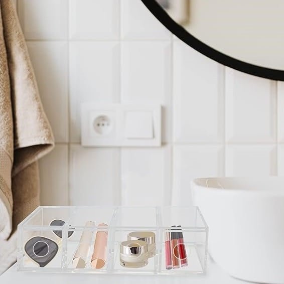 - VERSATILE & FUNCTIONAL: This slim organizer is perfect for making the most out of your space; Use one or stack multiples; Line them up side by side to create a custom storage system; Perfect for storing all types of household essentials; Use in the bathroom for blush, lip pots, face creams, eye shadow palettes, lip gloss, powder, serums, lotions, and hair ties; Great for small space living and tiny homes; Use in apartments, condos, college dorm rooms, RVs, and campers